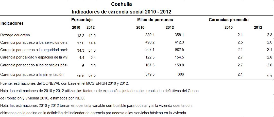 Síntesis de pobreza 2012 y rezago social 2010 en Coahuila