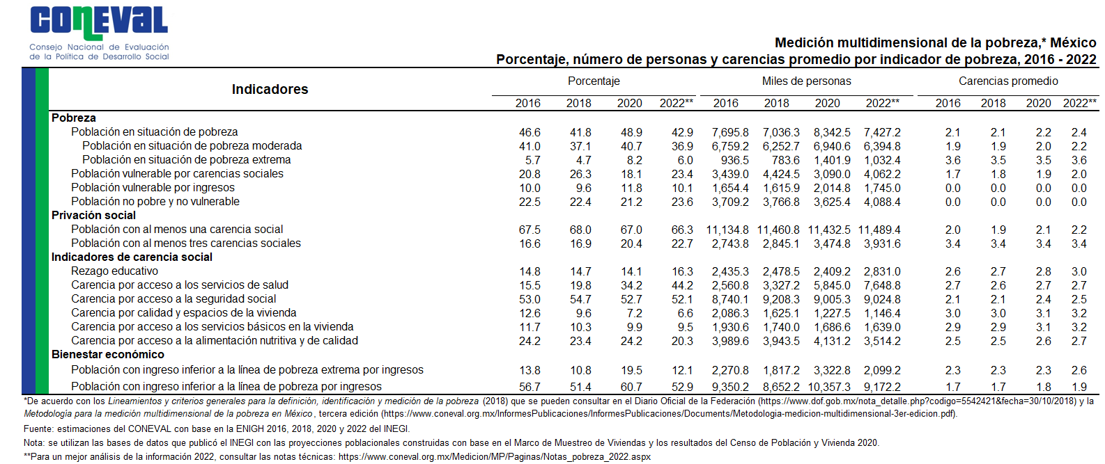 Los resultados generales de la medición de pobreza 2022 en Estado de México son: