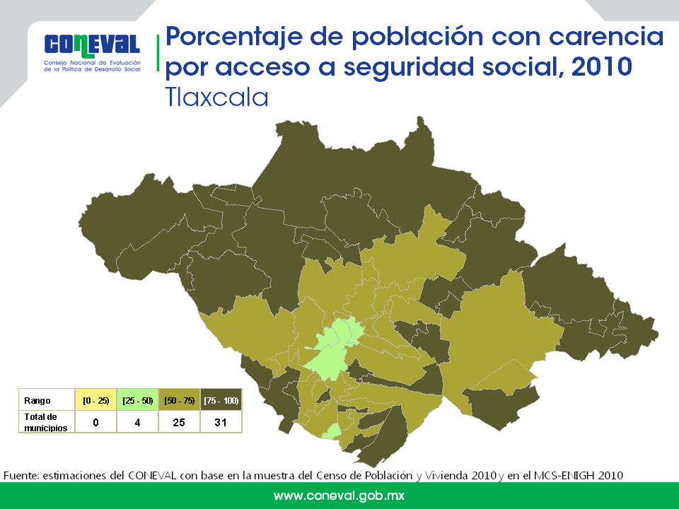 El estado cuenta con 60 municipios distribuidos en los siguientes rangos de porcentaje de población en pobreza: