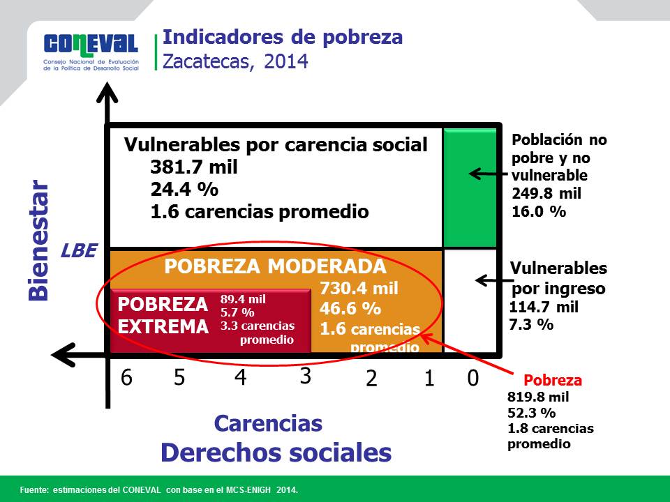 Una persona se encuentra en situación de pobreza cuando tiene al menos una carencia social (en los seis indicadores de rezago educativo, acceso a servicios de salud, acceso a la seguridad social, calidad y espacios de la vivienda, servicios básicos en la vivienda y acceso a la alimentación) y su ingreso es insuficiente para adquirir los bienes y servicios que requiere para satisfacer sus necesidades alimentarias y no alimentarias.
